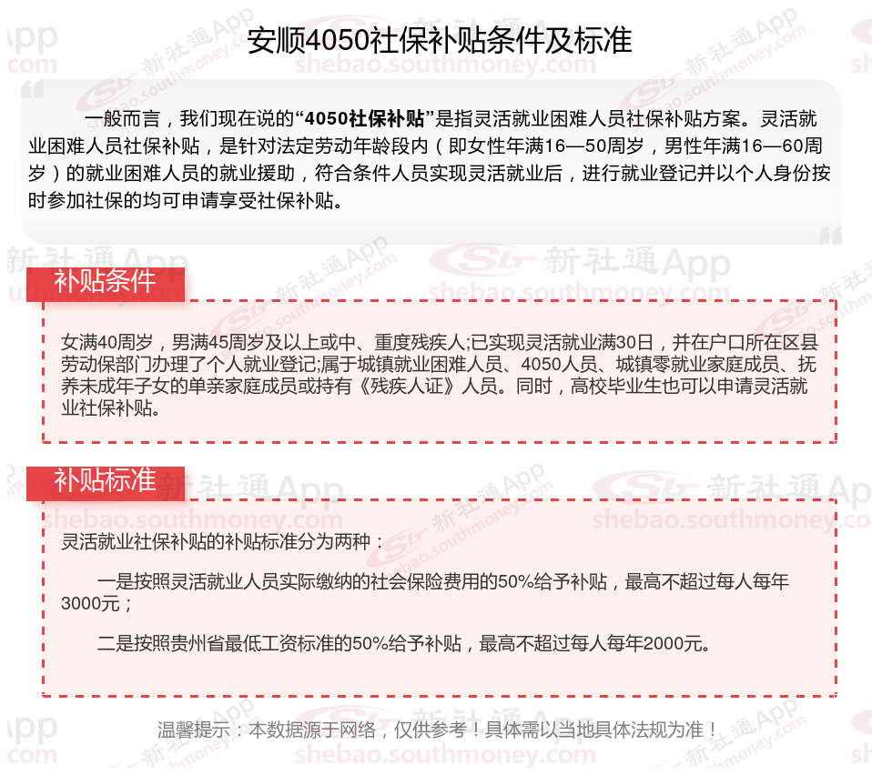 2024安顺4050补贴主要针对的是年龄在40岁以上的女性和50岁以上的男性,这些人群通常因为年龄较大而面临就业困难。