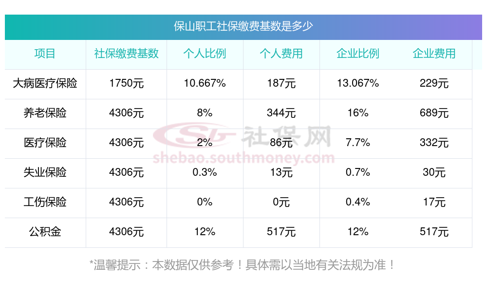 据了解,保山社保缴费基数2023-2024年标准,(社保最低一个月要交多少钱)保山社保费用如下: