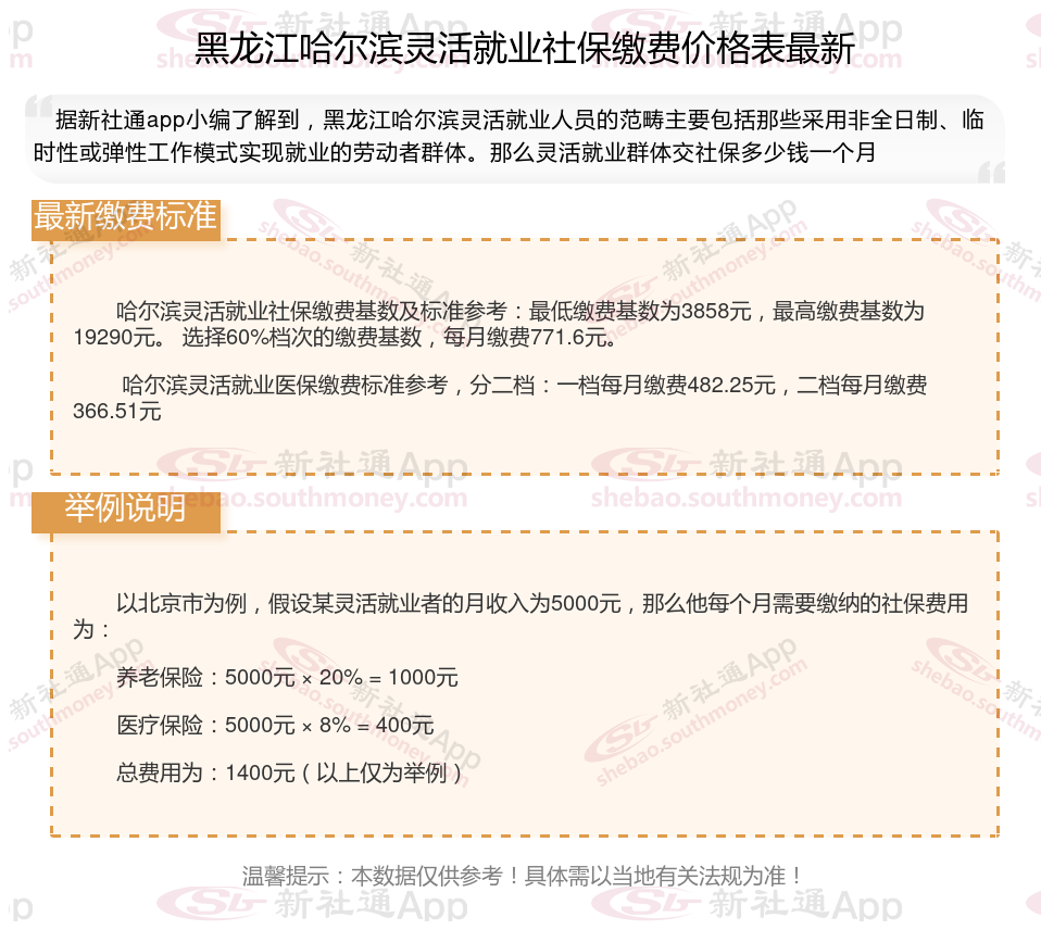 一、2024年黑龙江哈尔滨灵活就业社保缴费标准表 黑龙江哈尔滨灵活就业社保多少钱一个月?