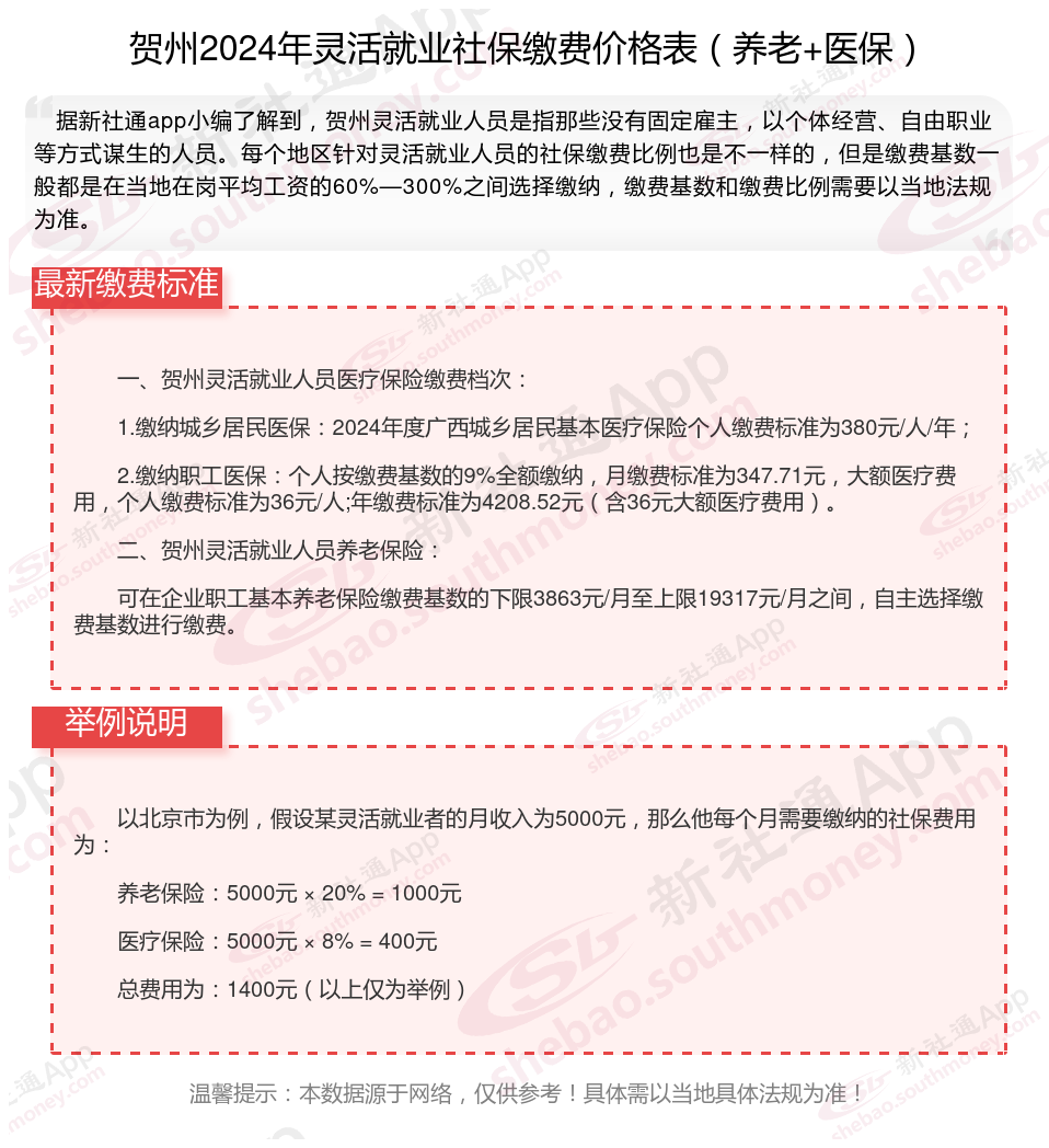 一、2024年贺州灵活就业社保缴费标准表 贺州灵活就业社保怎么交?