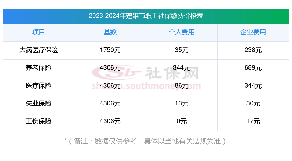 二、楚雄市职工社保缴费多少钱一个月,2023-2024年职工和公司社保各交多少钱?