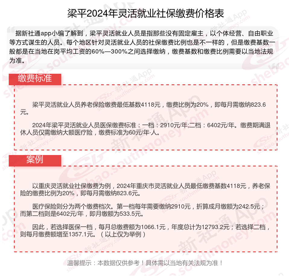 二、梁平2024年灵活就业社保缴费基数及比例最新消息