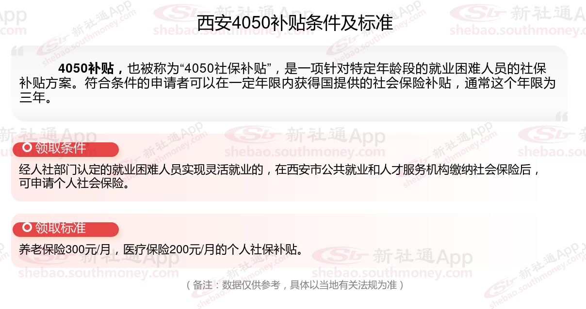 二、西安4050社保补贴标准及条件2023-2024年