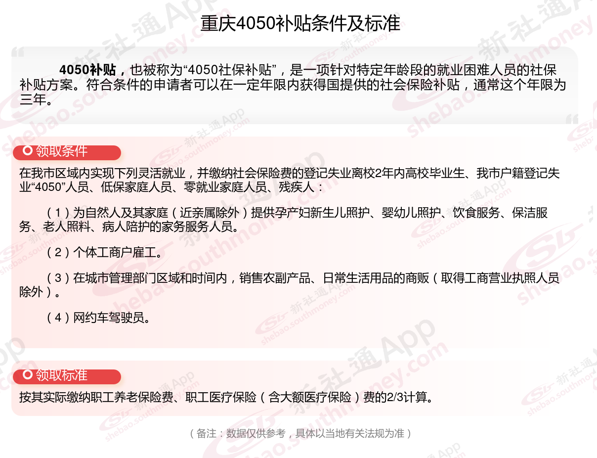 一、2023-2024年重庆灵活就业4050社保补贴标准和条件是什么