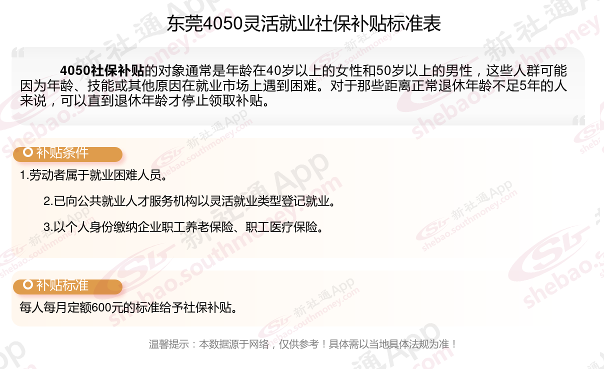 “灵活就业4050社保补贴”是指灵活就业困难人员社保补贴。该方案是对就业困难人员灵活就业后办理了就业登记手续并参加社会保险的,给予社会保险补贴。那么东莞4050灵活就业困难人员社保补贴标准是多少?东莞4050社保补贴需要符合什么条件?接下来随小编了解一下最新资讯。