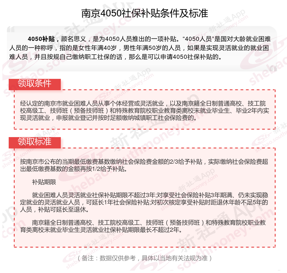 二、南京灵活就业4050社保补贴标准及条件是什么