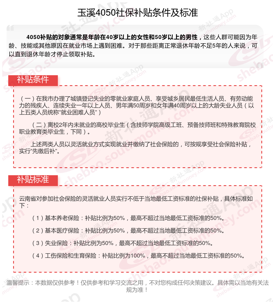一、玉溪4050社保补贴标准及条件2023-2024年