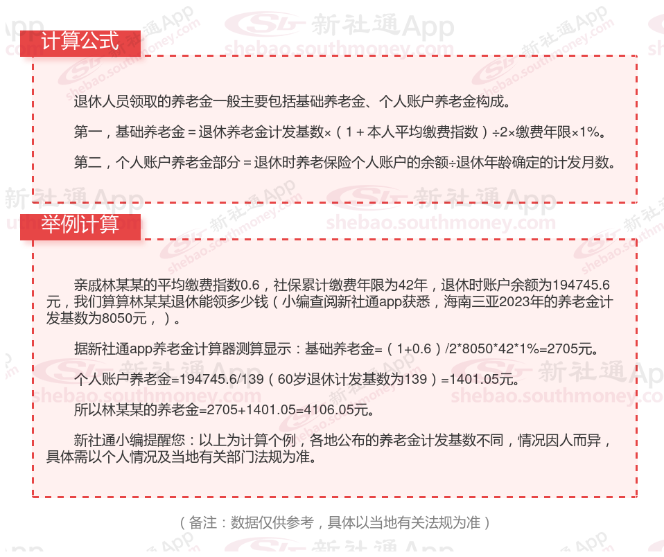 海南三亚养老金计算公式2024年计算方法(在线计算器)